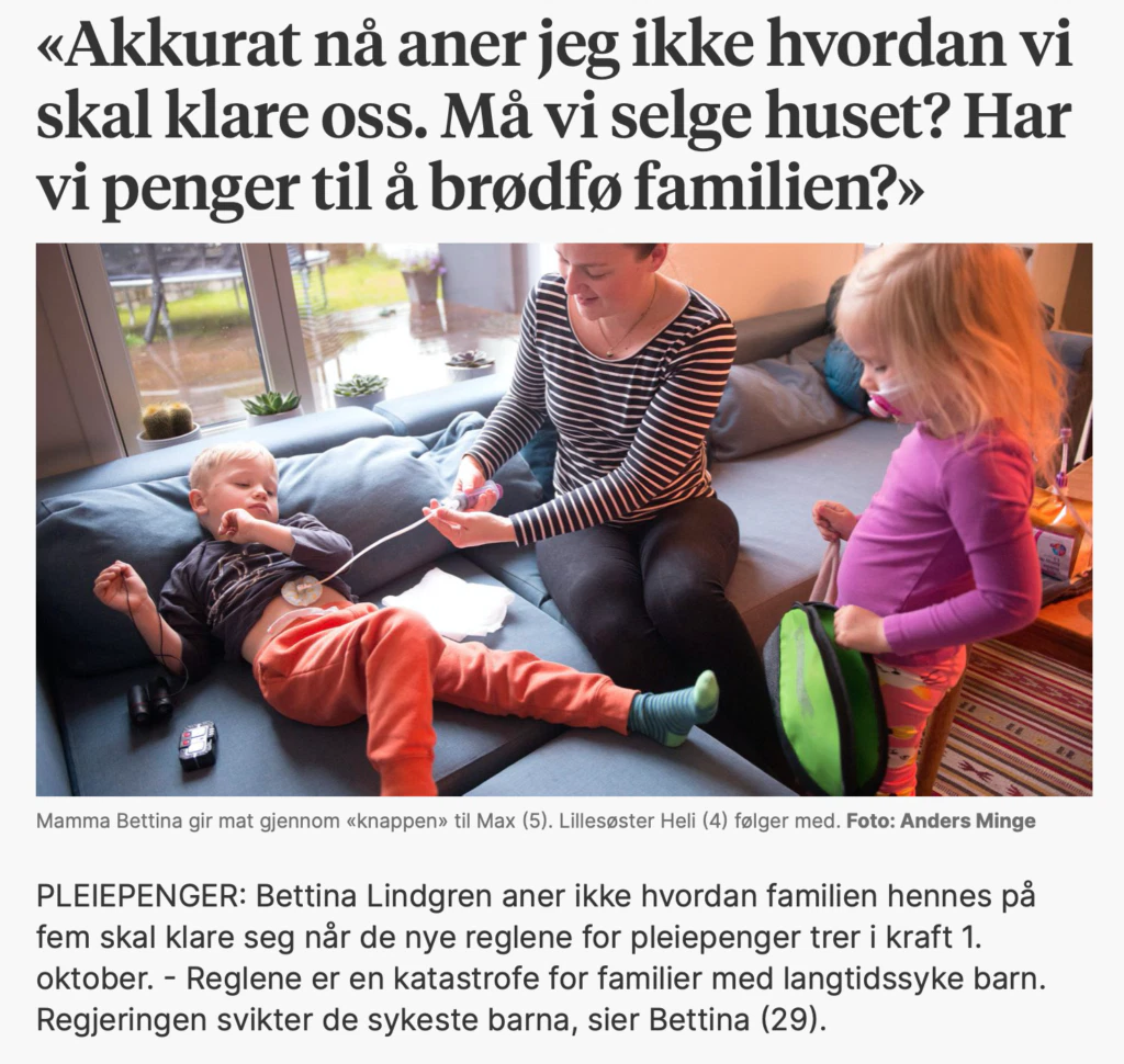 Det sier Bettina, en av forkjemperne i pleiepengeaksjonen vår, til Stavanger Aftenblad i dag.