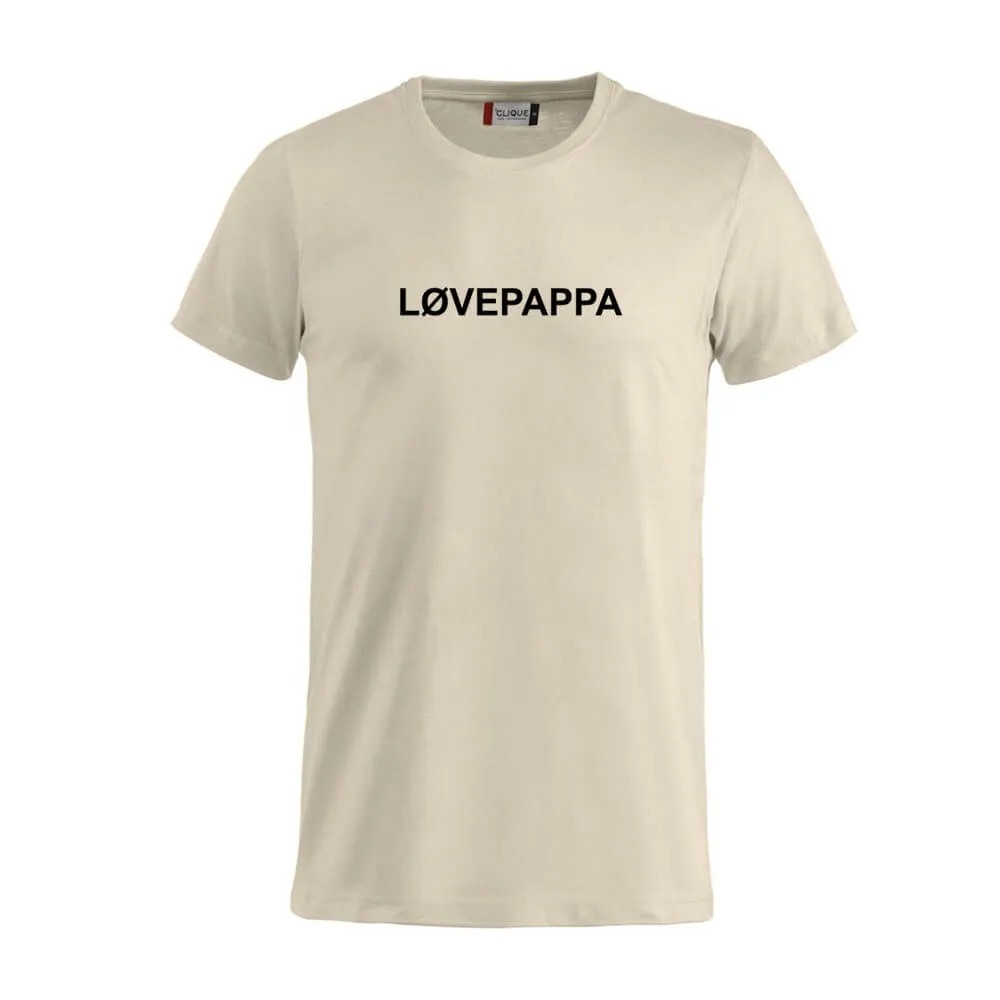 Basic t-skjorte i nydelig beige farge med teksten «LØVEMAMMA» på brystet.