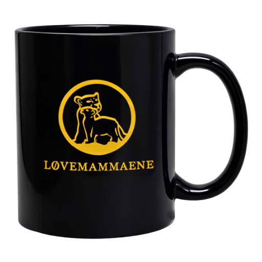 Solid krus med Løvemammaenes logo i gull. Koppen er akkurat passe størrelse, laget av steintøy med matt utside og blank innside. Perfekt til morgenkaffen!