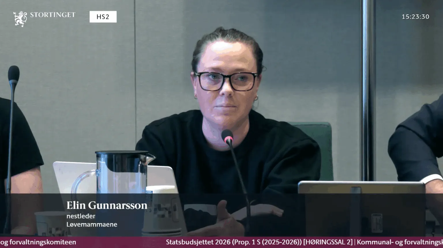 I dag deltok Løvemammaene i den muntlige høringen om kommunal- og forvaltningskomiteens budsjett for 2026 (statsbudsjettet). Det var styreleder Bettina Lindgren og nestleder Elin Gunnarsson, som deltok på vegne av organisasjonen.