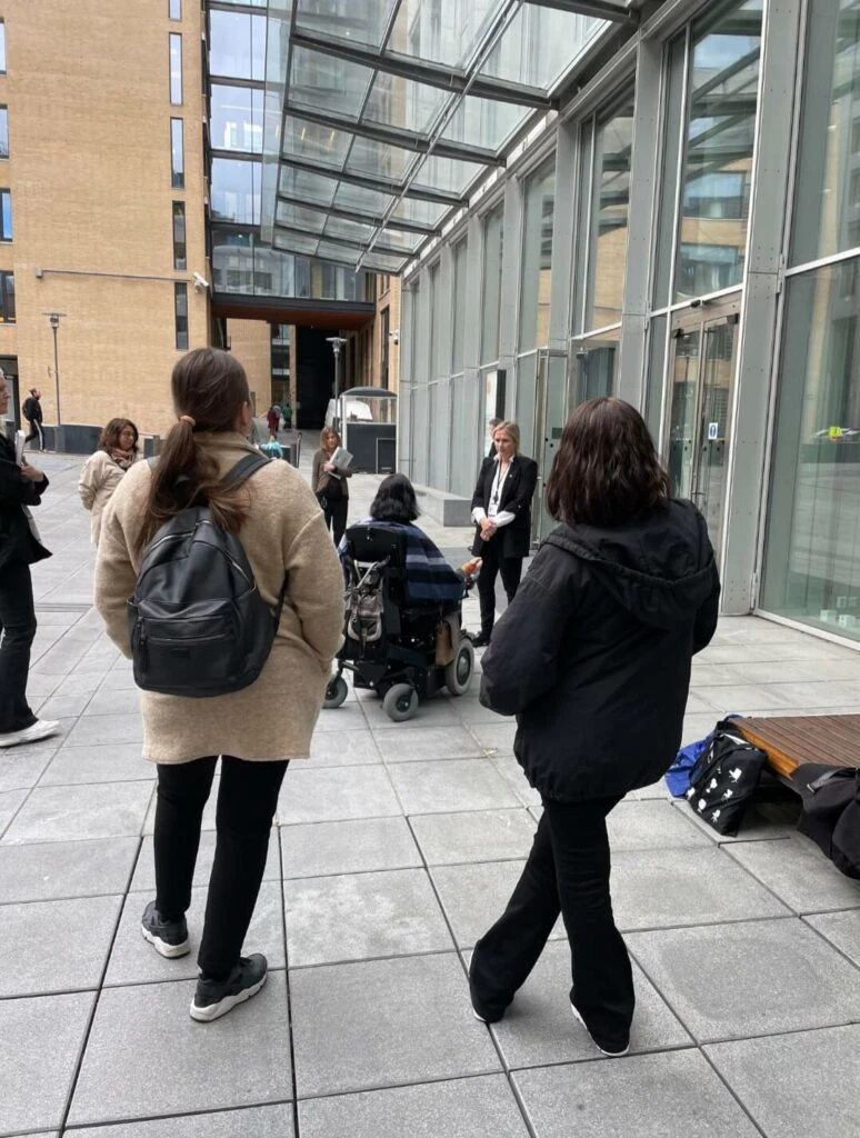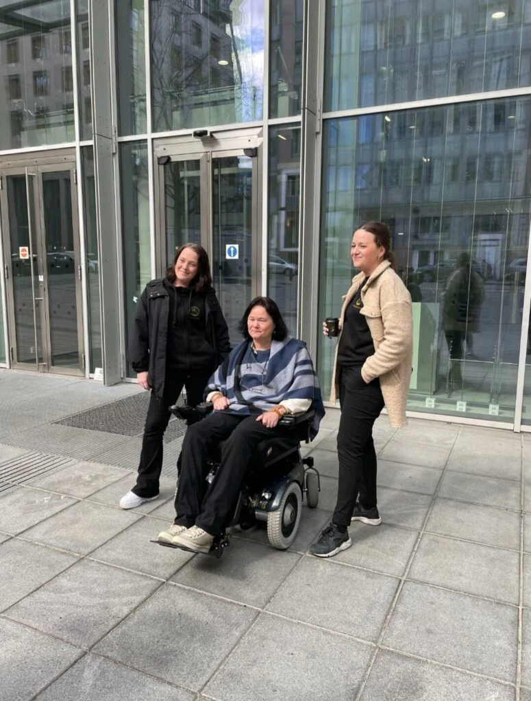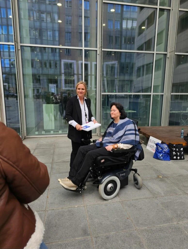 Videre gikk turen til Helse- og omsorgsdepartementet. I dag er det nemlig 500 dager siden BPA-utvalget leverte sin utredning om BPA-ordningen (NOU 2021:12 «Selvstyrt er velstyrt») til helseminister Ingvild Kjerkol, og fint lite har skjedd siden den tid. I den anledning har Uloba samlet inn 10 000 underskrifter som de overleverte til helseminister Ingvild Kjerkols statssekretær, Ellen Rønning-Arnesen. Kjerkol selv har blitt utfordret av Uloba til å selv ta imot underskriftene flere ganger, men har (skuffende nok) ikke villet gjøre det.