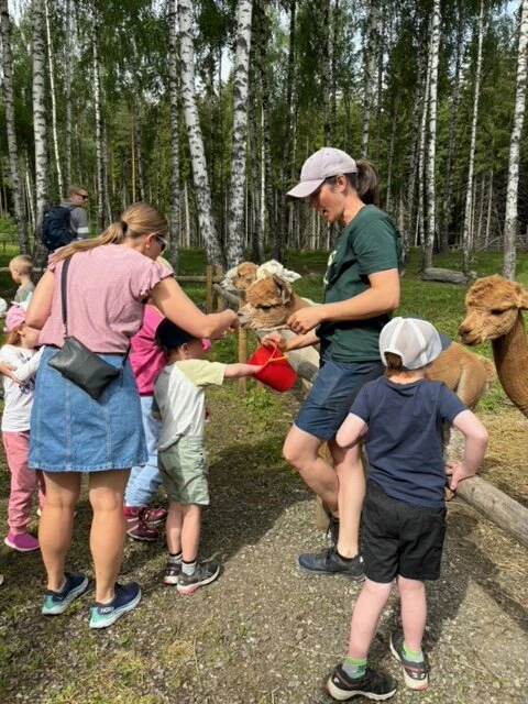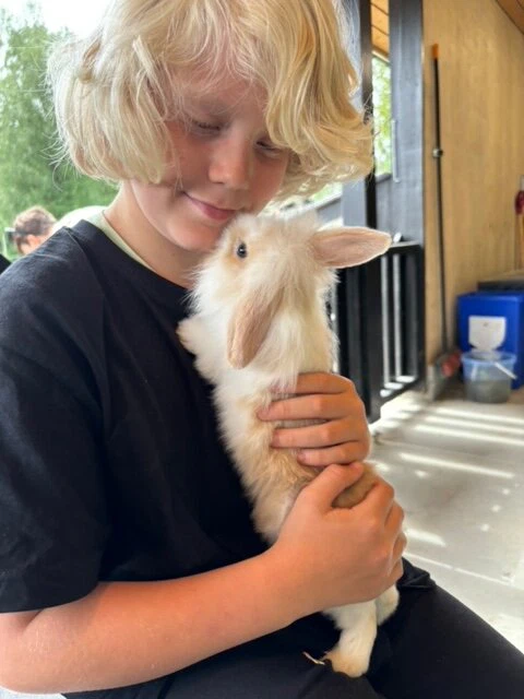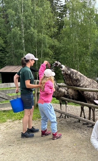 Alle barna fikk sin egen fôrpose av Løvemammaene Øst, i tillegg til at dyrepasser Elisabeth hadde med seg favoritt-frokosten til dyrene. Vi fikk hjelpe til med å mate blant annet strutser, alpakkaer og sauser, i tillegg til å kose med både esler og babykaniner.