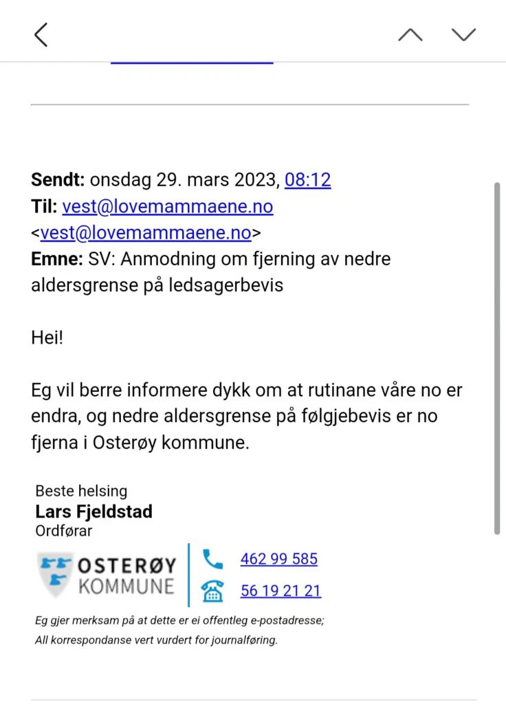 Siste bekreftelse fikk regionslaget vårt i dag fra selveste ordføreren i Osterøy kommune. Svaret kan dere lese under her.