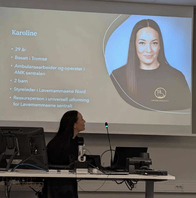 Karoline S. Hansen, styreleder i Løvemammaene Nord har holdt foredrag på UNN Tromsø, ved nyfødtintensiv i forbindelse med deres årlige arrangement «Tromsøkurset».