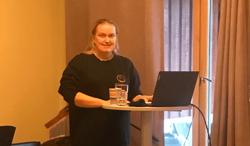 Nina snakket om hva barnepalliasjon er og om viktigheten av tverrfaglig støtte og ivaretakelse samt gode tjenester rundt disse familiene slik at det er mulig å ha fokus på god livskvalitet i hele barnets liv. Et kort liv er også et helt liv. «Kappen» som skal omslutte disse familiene bør ikke ha hull.