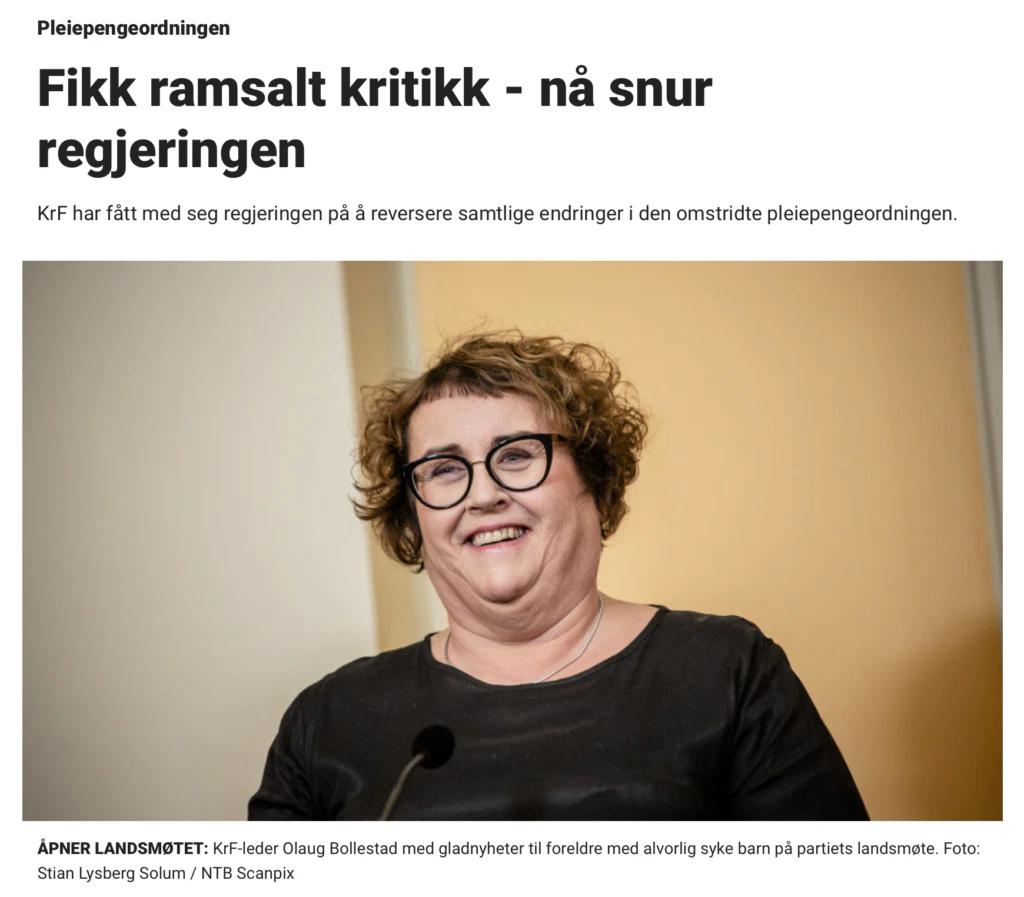 Det er lov til å grine en skvett nå. For dere: Vi greide det! Etter mer enn halvannet år med kamp om en rettferdig pleiepengeordning, har vi endelig fått rettet opp de urettferdige innstrammingene regjeringen innførte! Det kommer sent, men godt.
