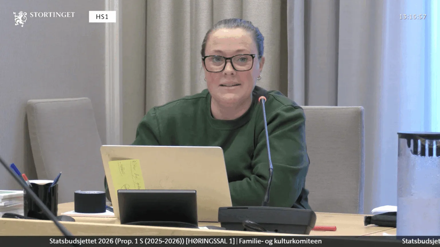 I dag deltok Løvemammaene i den muntlige høringen om kultur- og likestillingsdepartementets budsjett for 2026 (statsbudsjettet). Det var nestleder Elin Gunnarsson, som deltok på vegne av organisasjonen.