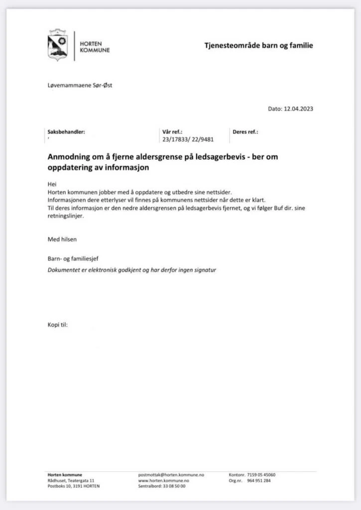 Løvemammaenes regionslag Sør-Øst fikk nylig de gode tilbakemeldingene etter å ha sendt ut anmodningene om å fjerne aldersgrensen i fjor og purringer sendt ut i år. Det nytter, og stadig flere kommuner fjerner nå aldersgrensen.
