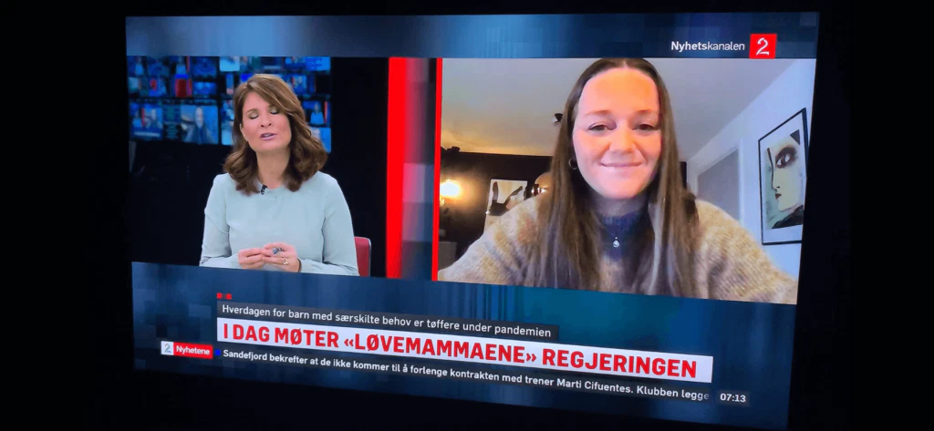 Våre morgenglade følgere fikk kanskje med seg et kjent og kjært fjes på TV2 Nyhetskanalen fredags morgen. Da ble Bettina intervjuet i forbindelse med den krevende situasjonen familier som er i behov av gode kommunale og offentlige tjenester og/eller spesialpedagogisk hjelp har lidd under Corona-pandemien. Hun ble også spurt om det viktige møtet mellom Løvemammaene og kommunal- og moderniseringsminister Nikolai Astrup som skulle foregå senere samme dag.