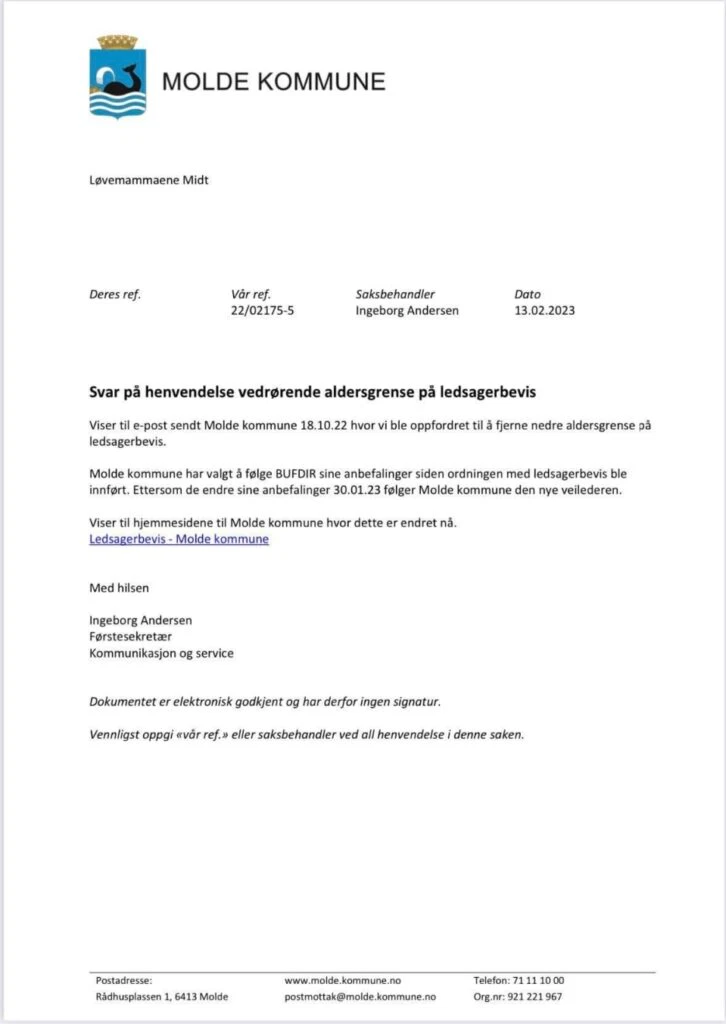 Løvemammaene Midt fikk i dag den gode nyheten om at Molde kommune endelig fjerner den diskriminerende aldersgrensen for ledsagerbevis.