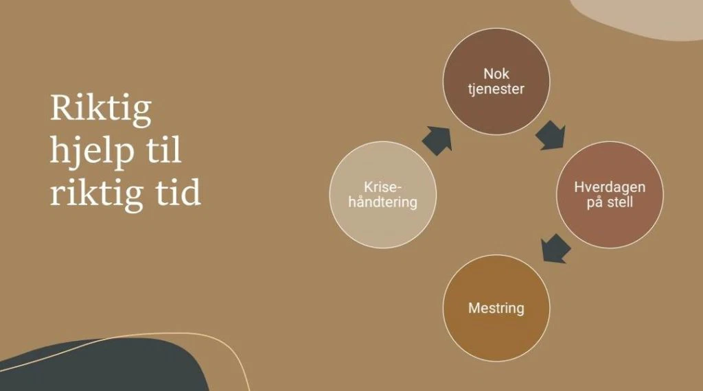 Hun snakket blant annet om hvordan det kan være vanskelig å mestre noe som helst når hverdagen står på hodet, stadige akutte situasjoner oppstår og alt føles håpløst, og om hvordan krisehjelp og nok tjenester i hjemmet må være på plass før man begynner å tenke på mestringskurs til foreldre. Fordi i en hverdag med barn og unge med store sammensatte behov, vil helse (enten somatisk eller psykisk) alltid veie tyngst på vektskåla.