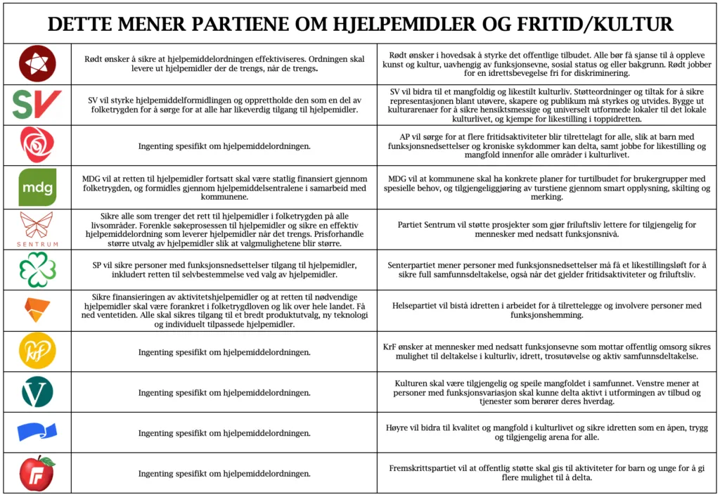 Vi i Løvemammaene har sammen laget en partiguide som tar for seg de viktigste sakene for vår organisasjon, både CRPD (menneskerettigheter), universell utforming, BPA, brillestøtte, barnepalliasjon m.m. Hva de ulike partiene sier om andre tema som f.eks. klima, kan dere finne i linkene til partiprogrammene deres her i guiden vår.