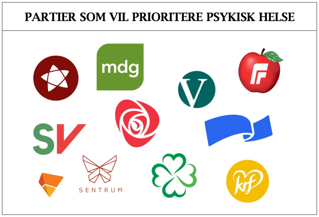 Samtlige partier er opptatt av å styrke tilbudene innen psykisk helse, spesielt hos barn og unge. Hvilke tiltak de vil gjøre og hvordan de skal nå målene sine varierer, men felles er en intensjon om å forbedre den psykiske helsen blant barn og unge. Noen er selvfølgelig bedre enn andre, så ønsker dere mer inngående kunnskap om partipolitikken kan dere sjekke ut Mental Helse sin rangering.