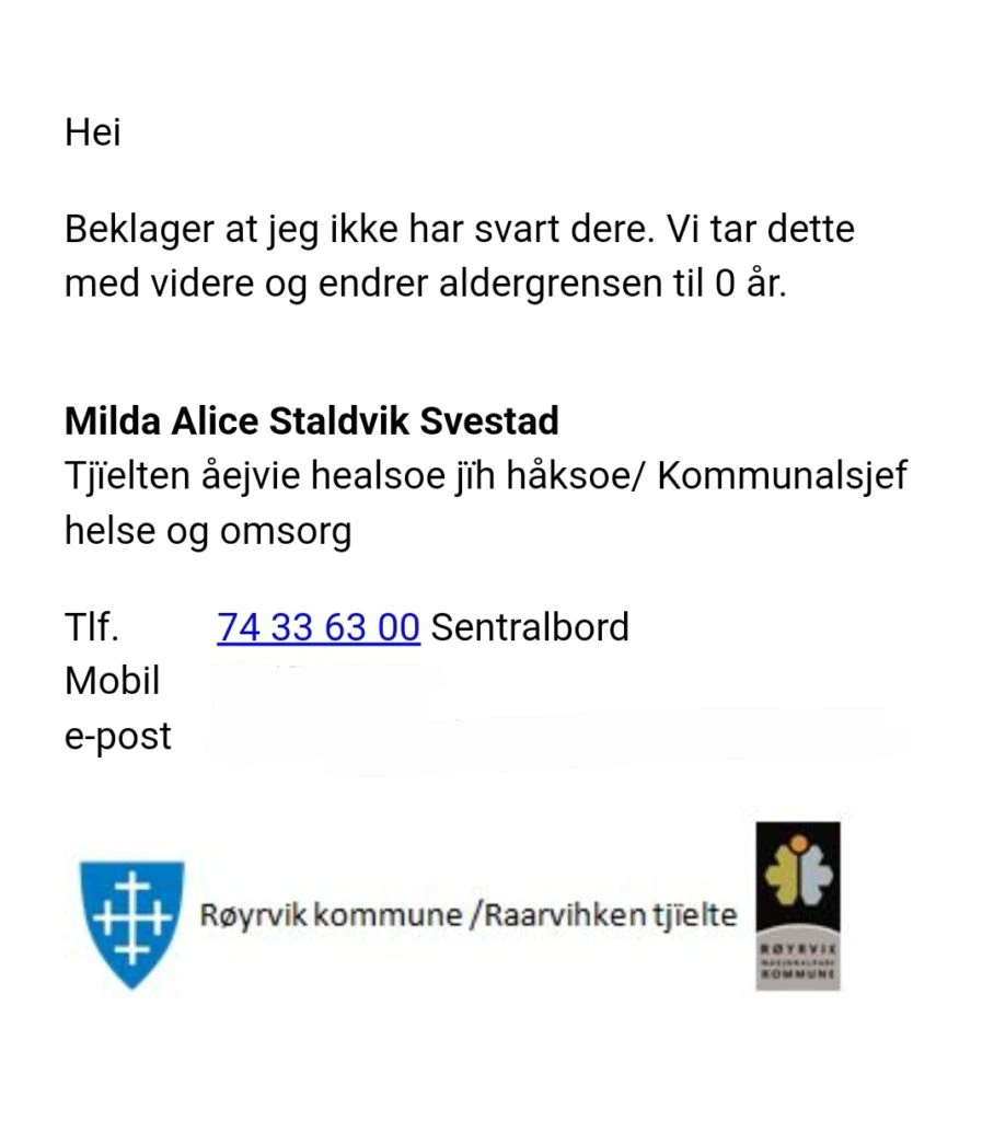 Les det positive svaret vi fikk fra Røyrvik kommune nedenfor:
