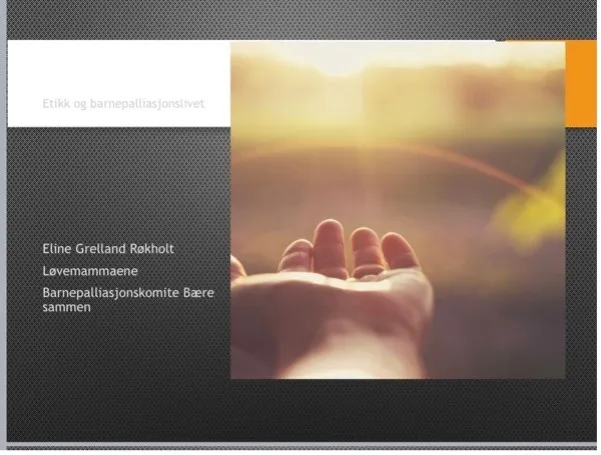 På fagdag for etikk i lindrende omsorg og behandling i Indre Østfold kommune, var temaet etikk i barnepalliasjon. Der fikk helsepersonell innsikt i mange avveininger som en familie hele tiden står i med sitt barn, om etiske og filosofiske sider ved sorg, og det å leve med alvorlig sykdom slik det erfares fra foreldreperspektivet.