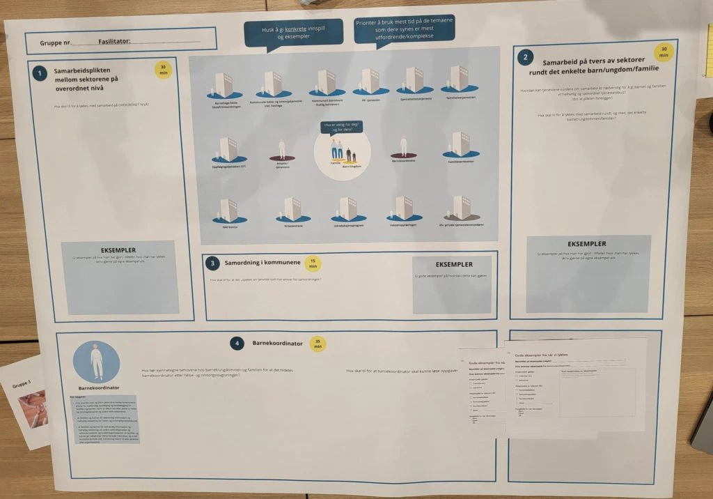 Bakgrunnen for den tverrsektorielle veilederen er lovendringene om samarbeidsplikt, samordningsplikt og barnekoordinator som trer i kraft 1. august 2022. Lovendringene følges som vanlig av mange fine ord og av intensjoner om bedre samhandling, eller som Helsedirektoratet formulerte i dag: Samhandling handler om å få til å virke sammen. Dette var en hel dag bestående av mye oppgave- og gruppearbeid med alle deltakerne fra ulike instanser, kommuner og interesseorganisasjoner. Formålet med dagen var gi styringsgruppen bestående av de fire ulike direktoratene verdifulle innspill til det videre arbeidet med utformingen av veilederen.